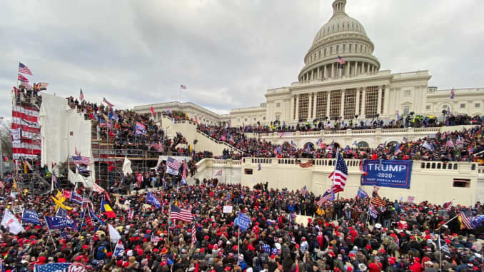 Jistě, Trumpovi sympatizanti pronikli do Kapitolu také, ukázali nám je dokonce i na ČT24. Pokojně Kapitolem procházeli v koridoru vymezeném provazy. Než rozlícený dav, připomínali tihle demonstranti spíše turisty, kteří s rodinou vyrazili do hlavního města výlet.