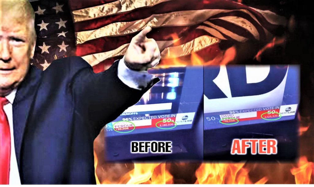 Ve Washingtonu je shromážděno statisíce Trumpových příznivců a podle posledních zpráv napadly budovu Kongresu. Děsivou událost volebního podvodu zachytily kanály televizních stanic CNN, ABC a dalších. Záběry z ABC nejprve ukazují kandidáta do senátu Davida Perdue se 2 130 535 hlasy, ale v příštím okamžiku má jen 2 125 535. Přesně stejný jev, tedy pokles počtu hlasů kandidáta do senátu Davida Perduea o 5 000, zachytila stanice CNN – kde opět šel z 2 130 535 hlasů na 2 125 535. Mezitím nedošlo k žádné změně v celkovém počtu hlasů kandidáta za radikální Demokratickou stranu Jona Ossofa.