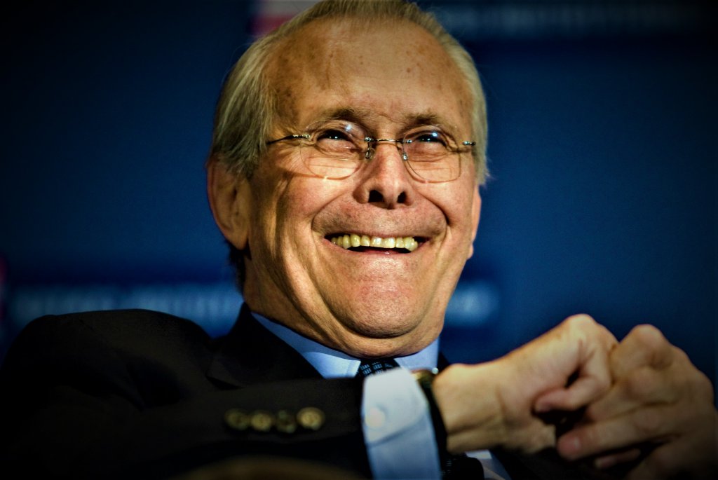 Zemřel neodsouzený válečný zločinec bývalý americký ministr obrany Donald Rumsfeld, který byl přímo (spolu s dalšími členy „Gangu Cheney“) odpovědný za plánování a rozpoutání agresivních válek v Afghánistánu (odkud se Američané plazí teprve nyní) a Iráku (odkud Američany ještě pořád vykopávají ven), jakož i za velký počet válečných zločinů v souvislosti s těmito válkami.