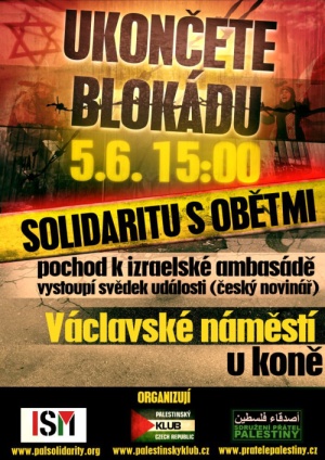 Demonstrace začne v sobotu 5.6. v 15.00 na horním konci Václavského náměstí a po zhruba hodinovém vystoupení řečníků se účastníci vydají na pochod k izraelské ambasádě, kde položí rakev jako symbol obětí izraelské blokády.
