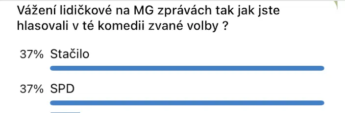 Anketa mezi tisíci odběratelů MGzpráv, koho volili. Zvítězilo SPD a Stačilo!.