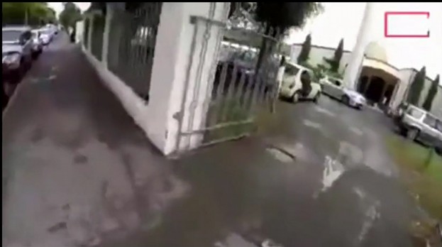 Pozn.: Při příchodu do mešity – Tarrant jde, v ruce jednu pušku, na boku zavěšenou druhou (u té mu navíc celou dobu zuřivě bliká ostré bílé světlo, již při vystupování z auta zřetelně vidět), má na sobě maskáče, na hlavě přilbu. Dva chlápci ve vchodu mešity zcela v klidu čekají, až k nim ujde odhadem (zkusil jsem odhadem počítat z videa kroky) cca 16 kroků, deset vteřin od brány k místu, kde Tarrant pušku zdvihne a začne pálit. A nic. Chlápci naprosto nevzrušeně odchází, pomalým krokem dovnitř chodby.