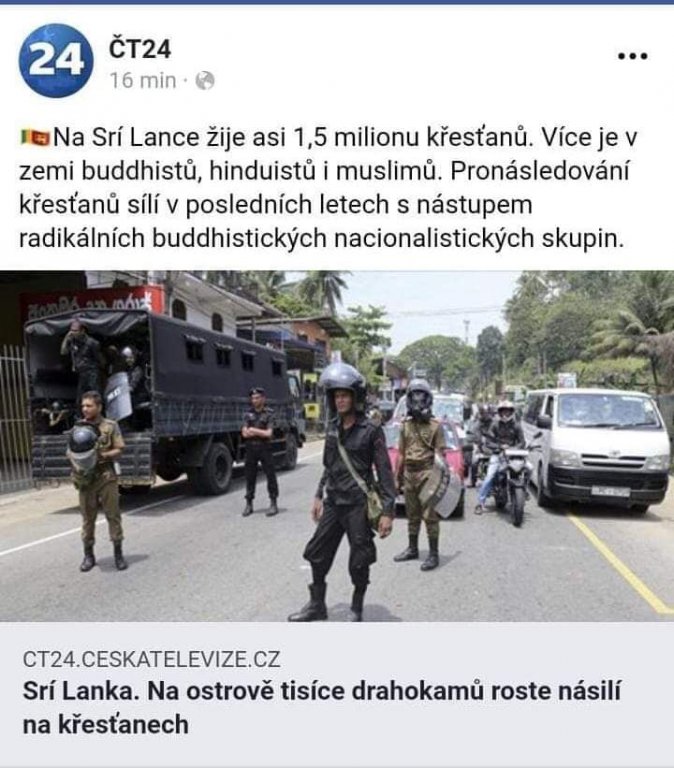 V době, kdy již celý svět věděl, že na kostely na Srí Lance útočili muslimové, tak Česká televize zveřejňovala texty o tom, že křesťané na Srí Lance čelí násilí pouze radikálních budhistů. Jistě, podle ČT asi budhisté uctívají Mohameda a usilují o ráj u Alláha (sarkasmus).
