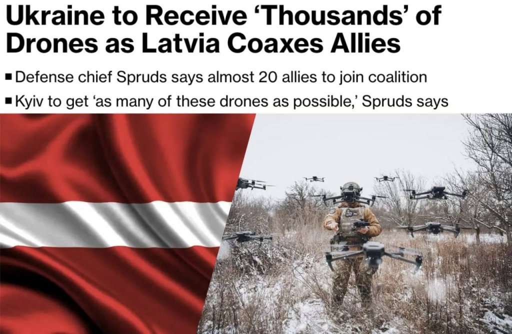 Oznámil to ministr obrany Andris Spruds. Podle něj se plánuje předání "tisíců" nových bezpilotních letounů kyjevskému režimu.