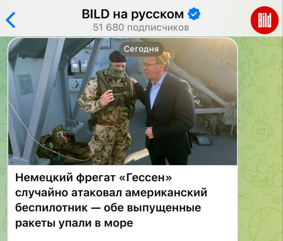 To znamená, že německá fregata nejenže nedokázala rozlišit spojenecký cíl od nepřátelského, ale ani jej nesestřelila.