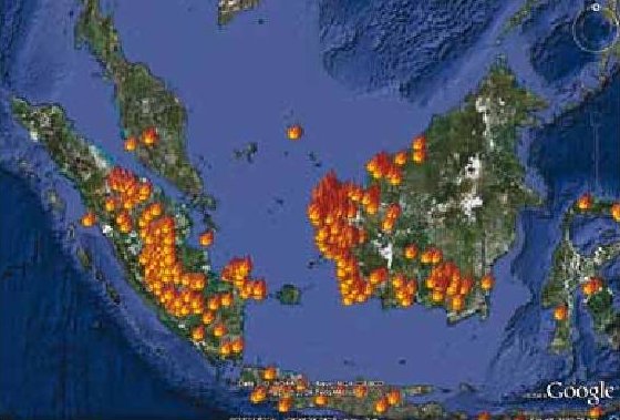 Požár zuří v délce asi 5000 kilometrů na více než dvou milionech hektarech deštného pralesa! Oheň je tak silný, že hoří samotná země, jakoby plamen vycházel přímo z pekla! Požár tak rozsáhlých rozměrů nemá v moderní historii lidstva obdoby! Indonésie díky tomuto požáru s více než 1.500 ohnisky v současnosti vyprodukuje za měsíc do ovzduší více CO2 než USA za celý rok!