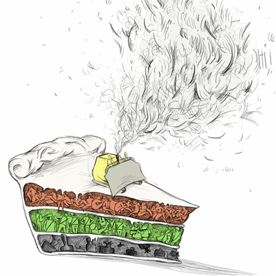 Složení: Vrstva odhodlaných aktivistů přes vrstvu poslušně rozzlobených vojáků a dále jedna vrstva lidí od médií (abychom dostali světovou příchuť) a buldozer místo třešničky!