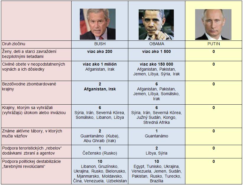 Porovnajte si bilanciu vrážd a teroristických aktov a potom si položte otázku, prečo je Putin v našich médiách prezentovaný ako agresor!