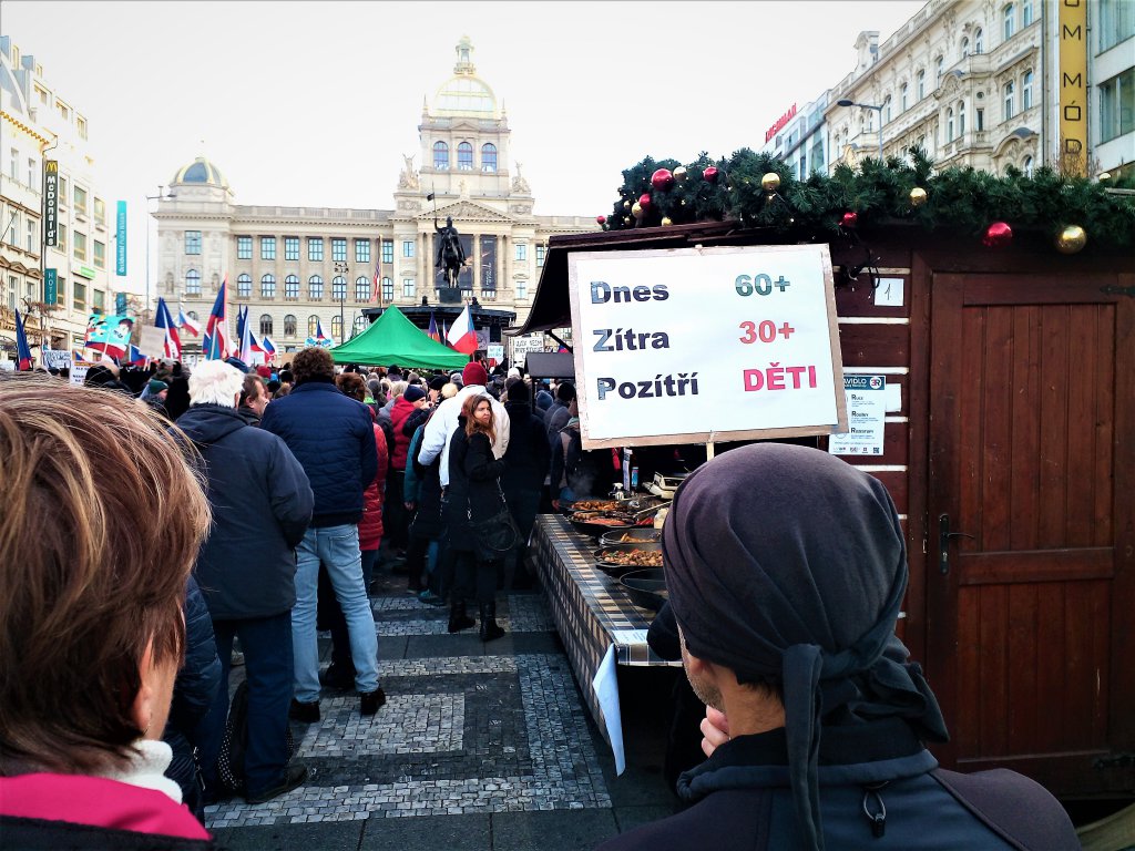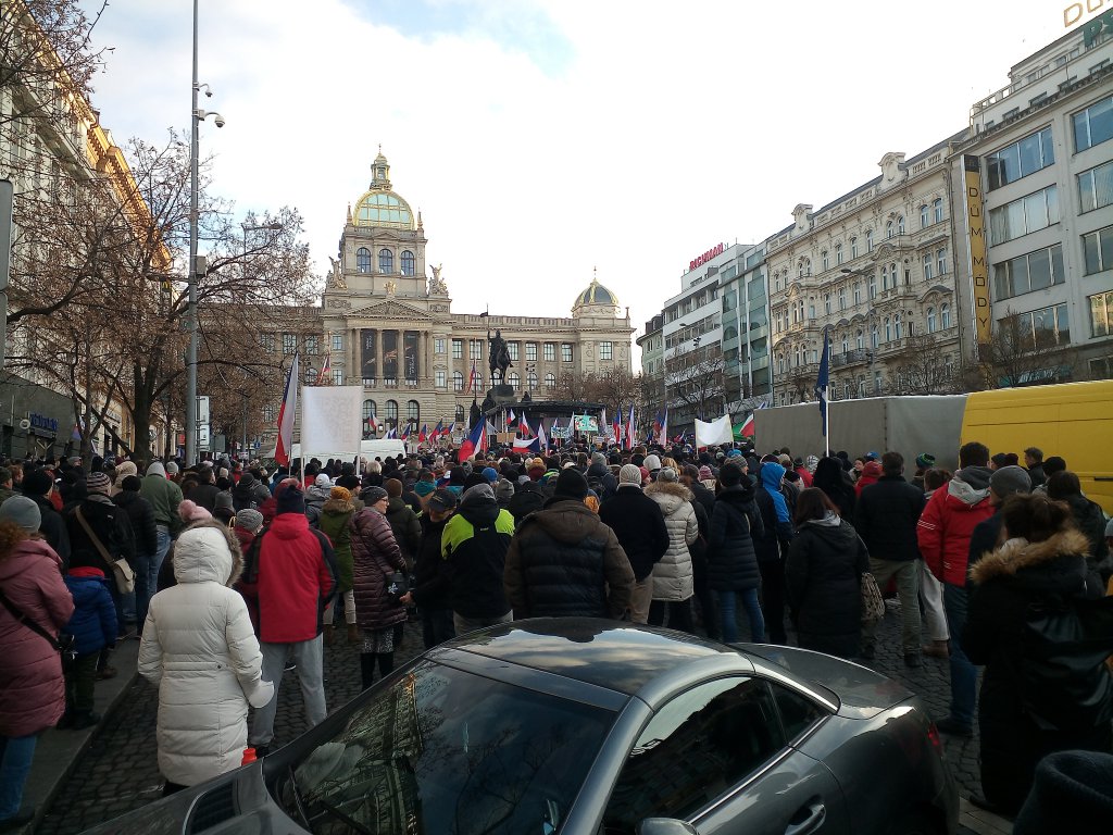 Demonstrace proti covid apartheidnímu fašizmu a proti násilnému kočkování ze dne 12.12.2021 na Václaváku, Praha
