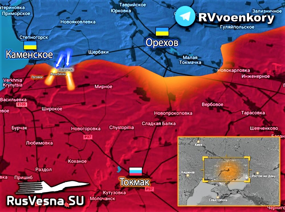 Tanky a pěchota ukrajinských ozbrojených sil opět zahájily ofenzívu na levém křídle Záporožského frontu, ruská armáda jim odpověděla palbou.