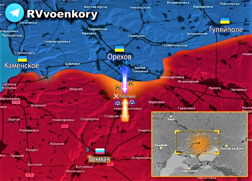 Za cenu velmi těžkých ztrát ukrajinské jednotky postupují hlouběji podél prvního úseku naší ešalonové linie a pod dělostřeleckým krytím postupují od Novodanilovky k Rabotinu.
