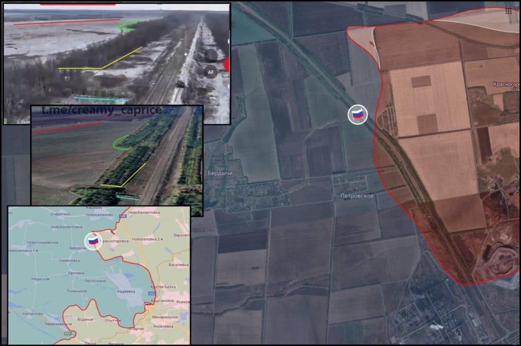 Ruská armáda dobyla opěrný bod ukrajinské armády severně od Petrovskoje (Stepnoje) podél železnice severozápadně od Avdějevky.