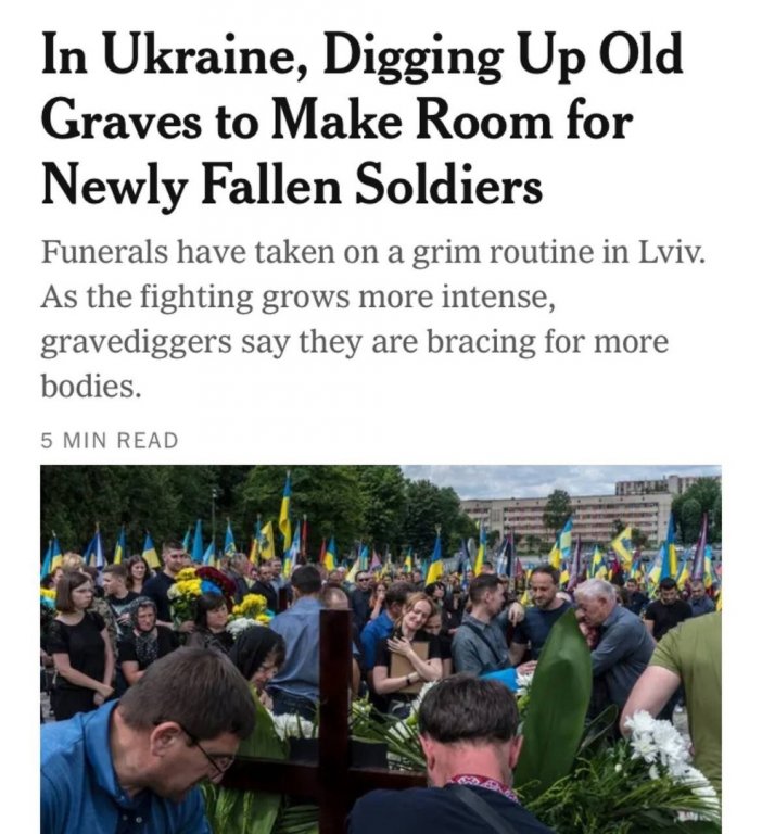 PS. Prostě již nemají všechny ty mrtvé kam dávat, ztráty Ukrajiny jsou obrovské, mnohonásobně vyšší, než přiznávají. Někteří Američané, jako třeba bývalý poradce Trumpa, plukovník ve výslužbě Douglas McGregor, který má zajisté pořád velmi dobré kontakty v Pentagonu a v tajných službách, hovořil již v dubnu o 400 000 mrtvých ukrajinských vojáků !!!