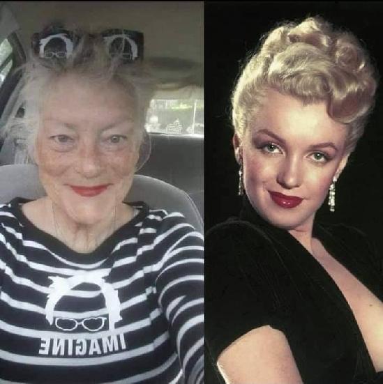 A pak se na internetu začaly objevovat fotografie, které, poctivě se přiznám, mne docela rozhodily a zprvu jsem je pokládal za čistý hoax. Např. fotografie staré ženy, která by svou dnešní vizáží a stářím odpovídala milence JFK - Marilyn Monroe, jež kdysi údajně tragicky zemřela na otravu barbituráty. Tak nad tím by se dalo mávnout rukou, kdyby však další fotografie této ženy nebyla společnou s nedávno omilostněným Trumpovým generálem Flynnem, který právě provádí začištění chapadel Deep State v Evropě. No a ve finále tato žena pózuje pod fotografii synpvce JFK. Navíc ta možná podoba...